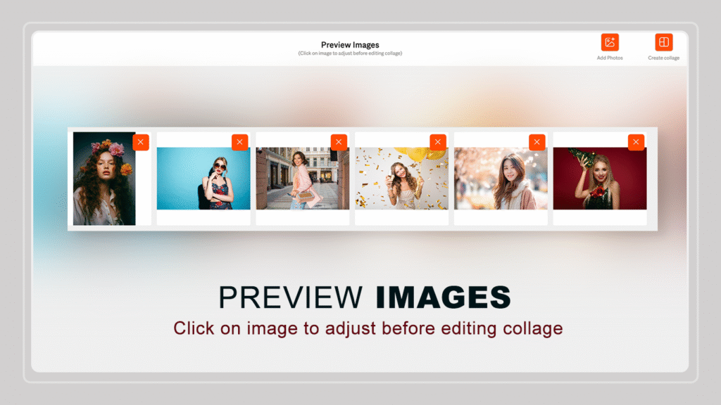 In the Preview Images window, you can review your selected photos before creating the collage.