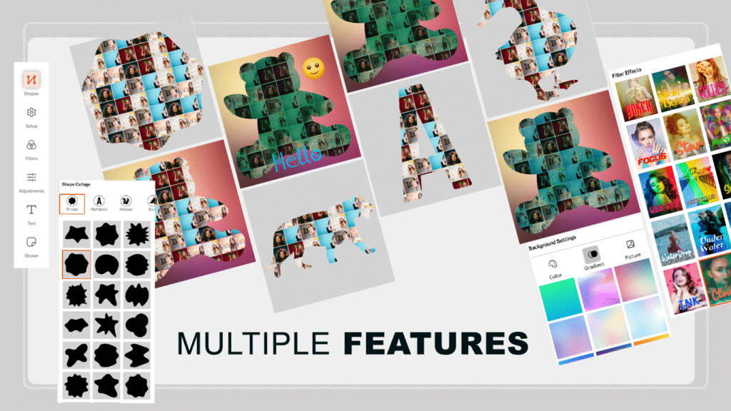 Collages are an excellent way to keep multiple images in one place, creating a lovely and astonishing view of your photos in different columns and beautiful patterns. The application provides a Collage feature to help you beautify your images.