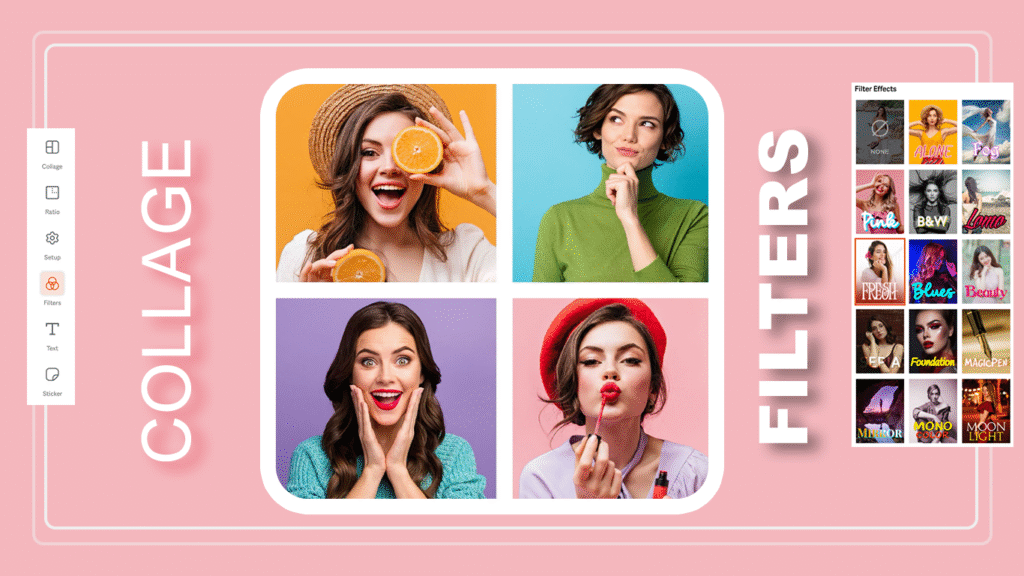 Collages help you keep multiple images in one place, creating a lovely and astonishing display in different columns and beautiful patterns. The Collage feature in our application is designed to help you beautify your images.