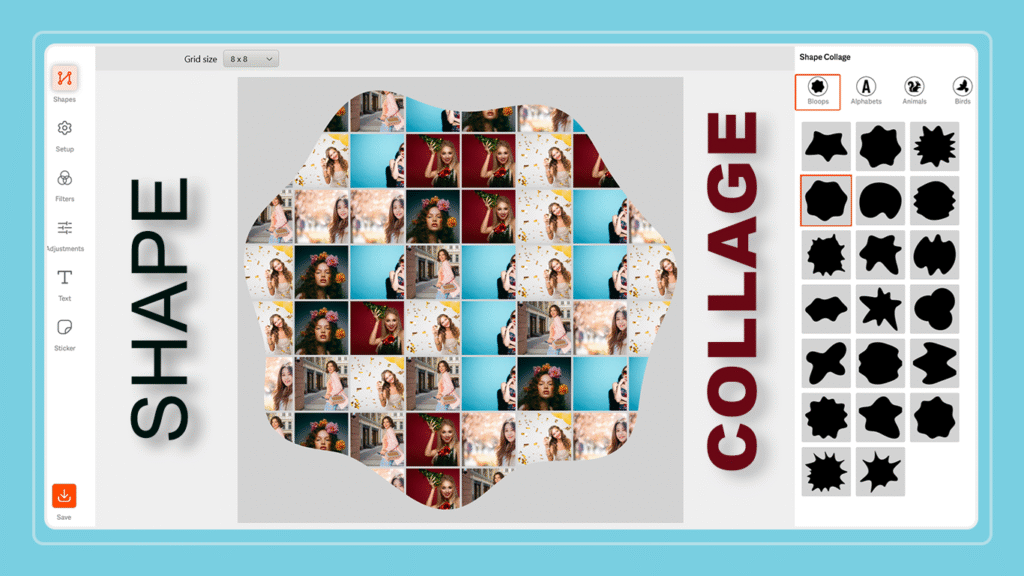 Select Shapes to overlay geometric designs or decorative outlines onto your photo. You can change the size, color, and opacity of these shapes. This feature is useful if you want to add visual interest or highlight a particular area in your image.