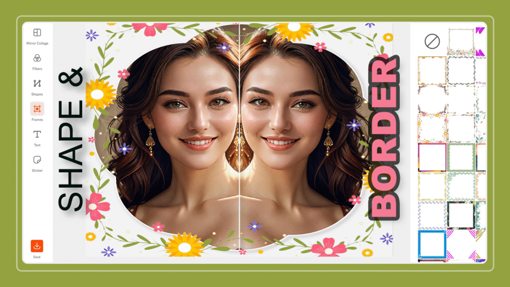 From the left-side toolbar, select Mirror Collage. You’ll find multiple mirror layouts that let you duplicate or reflect your photo in creative ways. Choose one that fits your style. You can adjust the spacing, angle, and reflection direction to get the perfect look.
